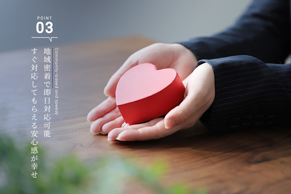 何かあった時にすぐにかけつけることができますので、お客様にご安心いただけたらと思います。