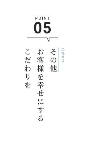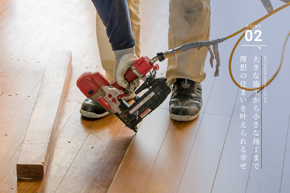 大きなハウスメーカーではないからこそ「このような理想を叶えたい」というお客様の想いをカタチにできる融通の利く施工が可能です。お客様に応えるために妥協のない施工を提供いたします。